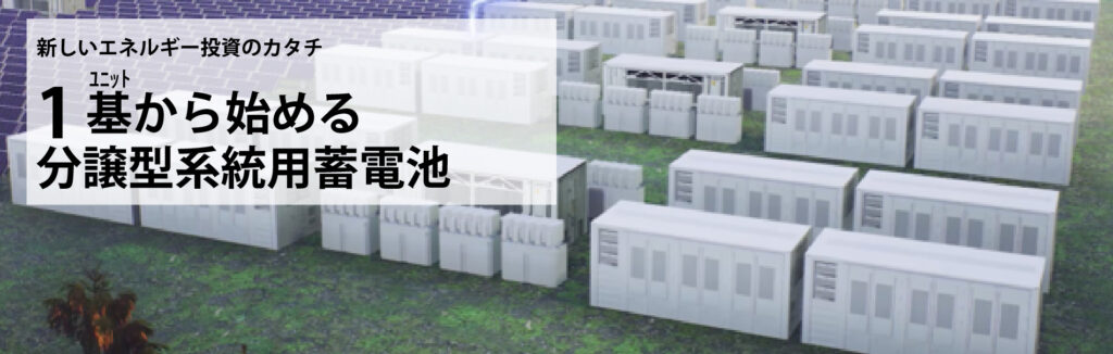 新たに動き出した系統用蓄電池。ただ蓄電所の購入にはとても大きな金額がかかってきます。そこで1基(ユニット)販売にすることで多くの方に蓄電池投資の機会がえられます
